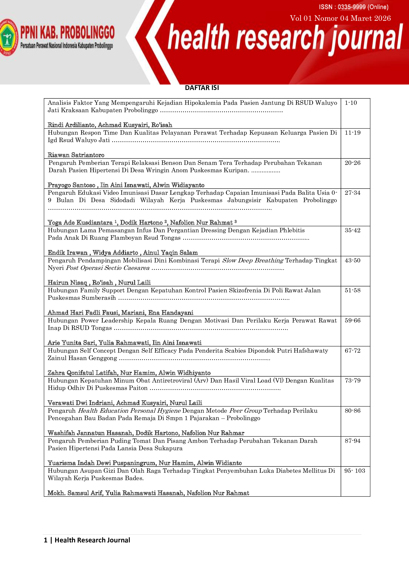 Vol 1 No Nomor 1 Maret (2026): Healt Research Journal